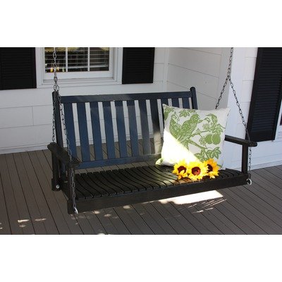 Enjoy warm summer evenings and bring a touch of romance and charm to your front porch or patio with this slat style swing, a classic swing that will easily become a favorite spot when the weather is right. Made of wood in your choice of finishes, the swing is designed to hang from an existing support. Classic adult slat porch swing . Made of solid ash hardwood . Made in the USA . Pictured in Black finish . Ready to assemble format . Minimum assembly required . Weight Capacity: 350 lbs. . Ships in 2-4 days . 48 in. W x 26 in. D x 25 in H Slat Porch Swing (Black)