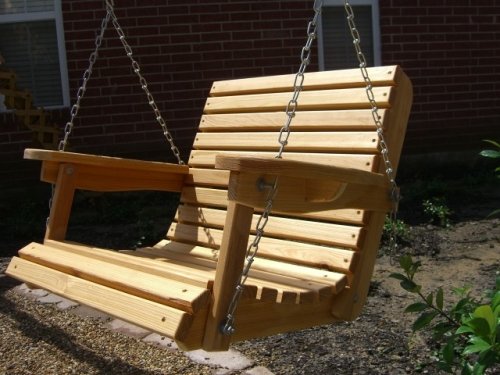Enjoy this single seater which can be hung from a porch or tree. The adjustable angle seating and contoured back and seat makes this a very comfortable swing. Hanging chains optional. Optional Springs are available to smooth out the ride. Optional carving is available to 'personalize' your swing. Optional water sealer will keep your swing safe from the elements. Swing comes 75% pre-assembled and takes the average person 10-15 minutes to put together. Features: Kiln dried #1 Select Louisiana Cypress. Sanded extra smooth for your comfort. All galvanized hardware. Suspension chain optional (54" from top of the V). Easy, illustrated assembly instructions. 2' Swing dimensions are: 33" Wide, 23" Tall, 22" Deep. 2 Foot Louisiana Cypress Porch Swing