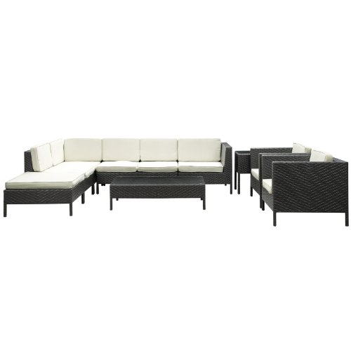 Shine with hidden brilliance with this powerful force of an outdoor living arrangements. Finely constructed espresso rattan seating sectionals with all-weather light blue fabric cushions give a sense of space and roominess that allow for true flexibility and comfort. Aim higher and give thanks and appreciation to picture perfect days spent outside. Set includes: coffee table (1): 47-inch l by 28-inch w by 13-inch h side table (1): 18-inch l by 18-inch w by 24-inch h ottoman (1): 31-inch l by 31-inch w by 13-inch h armchair (2): 35-inch l by 31-inch w by 28-inch h corner section (1): 31-inch l by 31-inch w by 28-inch h right arm section (1): 35-inch l by 31-inch w by 28-inch h loveseat (1): 47-inch l by 31-inch w by 28-inch h armless chair (1): 28-inch l by 31-inch w by 28-inch h set features: all weather synthetic rattan weave powder coated aluminum frame water and UV resistant machine washable cushion covers easy to clean tempered glass top ships pre-Assembled LexMod La Jolla 9-Piece Outdoor Rattan, Espresso with White Cushions