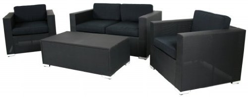 The River Cottage Gardens collection offers a wide selection of patio furniture and accessories in varying styles. From wood to fabric the collection is tasteful and contemporary with prices to accommodate any budget. Make your garden, deck or patio come alive with furniture and accessories from the River Cottage garden collection. River Cottage Gardens 760342BLK Black Color Textilene Sofa Set
