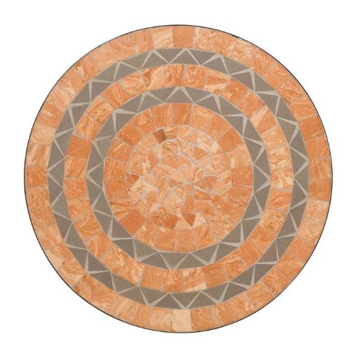 This bistro table features a table top constructed of small, square and triangular, terra cotta and gray sandstone tiles in a ringed pattern. The cabriole designed base is constructed of steel in a black finish. Adjustable, nylon glides prevent damage to surfaces caused by movement and provide stability on uneven surfaces. Table measures 27-1/2-inch width by 27-1/2-inch depth by 30-inch height. Home Styles 5603-34 Bistro Terra Cotta Tile Top Dining Table