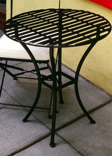 This sturdy, handmade wrought iron table folds flat for easy portability and space saving off-season storage. The attractive powder-coated, weather resistant finish protects the table from rusting when left outdoors. No garden, pool or patio setting is complete without the versatile Round Bistro Table. Enhances both small balconies and large patios/yards. The table is well suited for both suburban and urban appeal. This table was designed specifically to fall within the size limits of UPS transportation saving money on shipping costs. The Round Bistro Table is pictured here with a set of our Folding Dining Chairs. For the perfect set up, add a set of the Folding Dining Chair to your order! PTC Home & Garden Bistro Round Table, Pewter