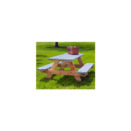 . When picnic tables sit outside, it doesn't take long for them to get grimy and spotted by who knows what. Use the Elasticized Picnic Table Cover Set to refresh your table and provide a clean eating surface as well as a clean place to sit! The Elasticized Picnic Table Cover Set is made of flannel-backed vinyl that wipes clean easily. Elastic edges provide for a quick and secure fit, plus you won't have to worry about the covers blowing off in the wind. This 3-pc. set includes a table cover that fits a picnic table up to 60"L x 34"W, and two bench covers that fit benches up to 58"L x 16-1/2"W. Imported.Benefits of the Elasticized Picnic Table Cover Set: