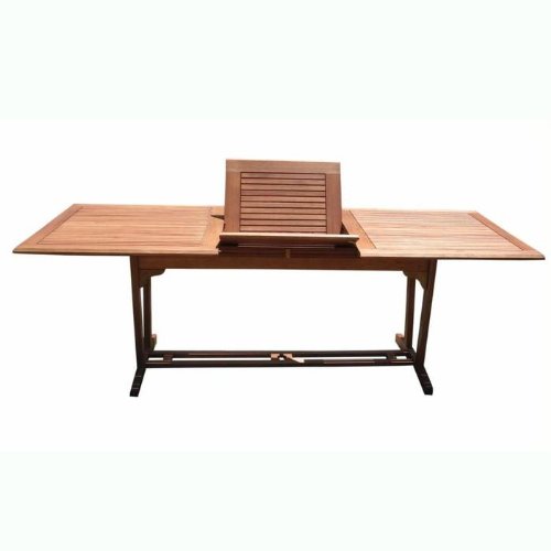 Design: Table allows you to easily extend the table length when more people arrive at your outdoor function than you had anticipated by sliding the two surface halves apart to expose two hidden leaves underneath that elongate the table. Material: High Density Wood (or also known as Shorea in our line) is the premium grade of solid “Wood Gradis" hardwood, grown in 100 % well managed forests in Brazil, certified by the FSC (Forest Stewardship Council). There is little difference between High Density Wood (Shorea) and Teak when broken down to their core essence. The biggest attribute of High Density Wood (Shorea) is undoubtedly the strength of the timber. It’s renowned for its excellent resistance to every day wear and tear. It is extremely durable and tightly grained to produce a desirable density. It remains unaffected by all variations in weather, especially its resistance to damp conditions makes itself extremely competent at combating insect attacks and decay VIFAH V232 Outdoor Wood Rectangular Extention Table with Foldable Butterfly