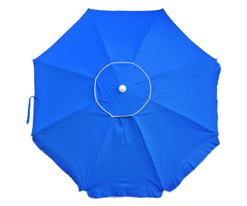 This platinum series Beach Umbrella has a 6.5 foot diameter canopy made from rugged Polyester fabric with UV-resistant silver coating for UPF 100+ sun protection. The skirted valance adds more shade and protection from the elements including wind and rain.